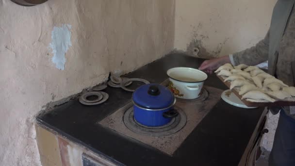 Velha Mulher Mãos Coloque Bolinhos Com Coalhada Em Panela No Fogo