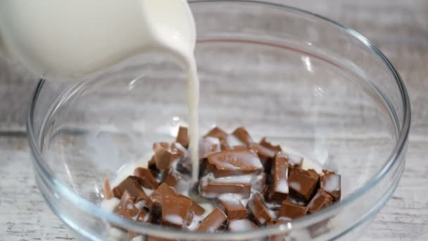 Verter O Creme Quente Fazer Ganache De Chocolate Ganache é Uma