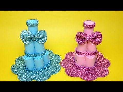 20022014 bolo fake. 3 mini bolo em eva simples e fácil. Planta com rolos de papel bolo de fraldas passo a passo.