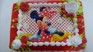 bolo do mickey quadrado com papel de arroz e chantilly.